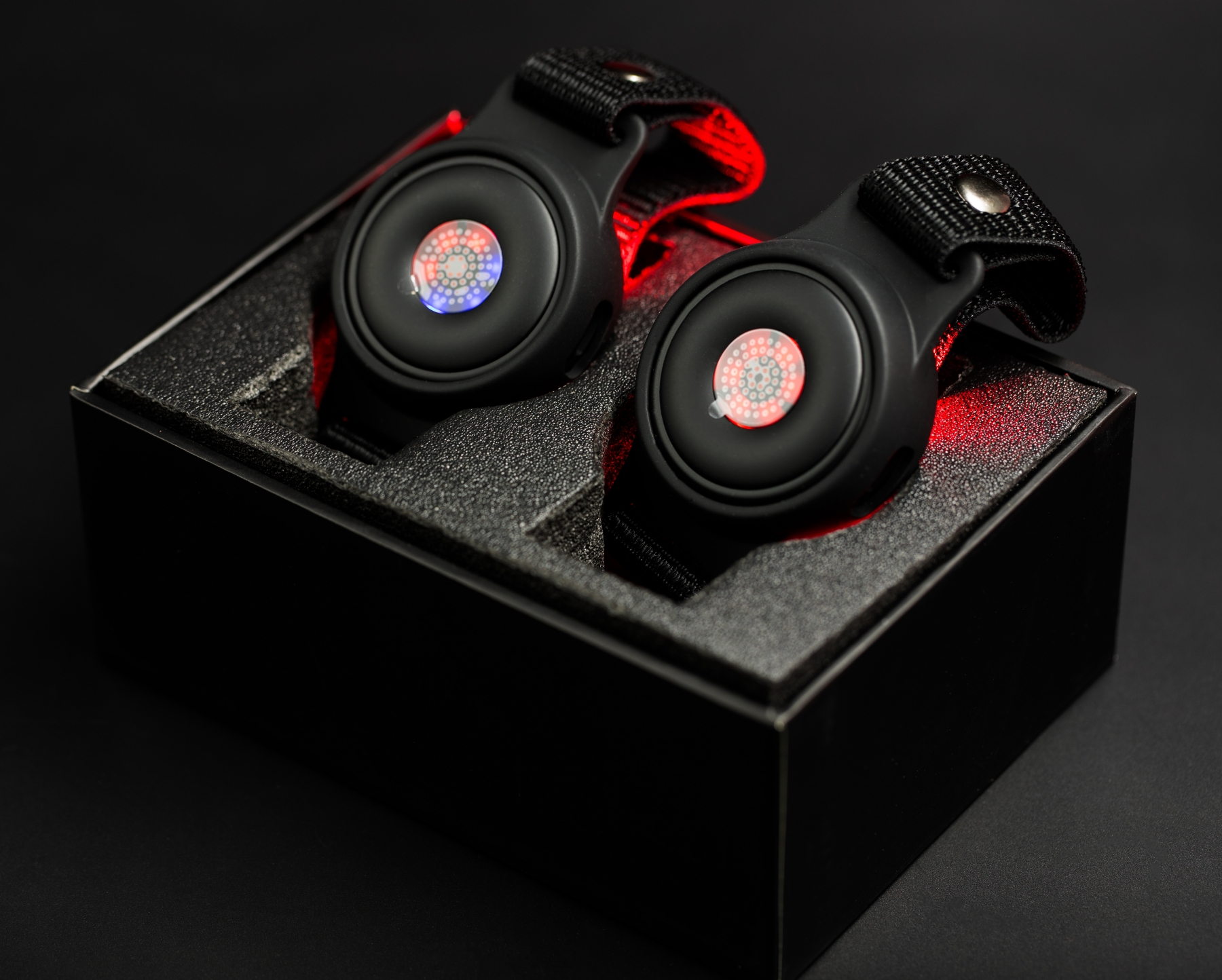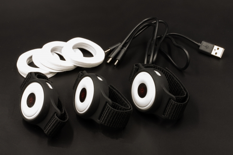 Acu-LED is a small round device with a diameter of 4 cm, which emits 19 LED lights, of which 9 are red with a wavelength of 650 nm and 10 are infrared with a wavelength of 850 nm
