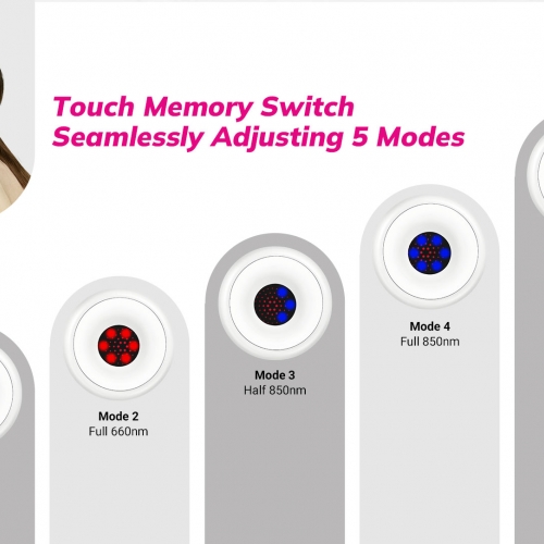 5 light modes: full/half red, full/half NIR, combination red + NIR