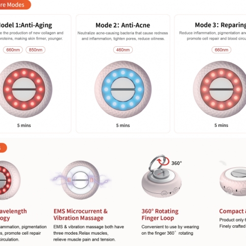| Function | Three modes of light therapy + EMS microcurrent + vibration massage |